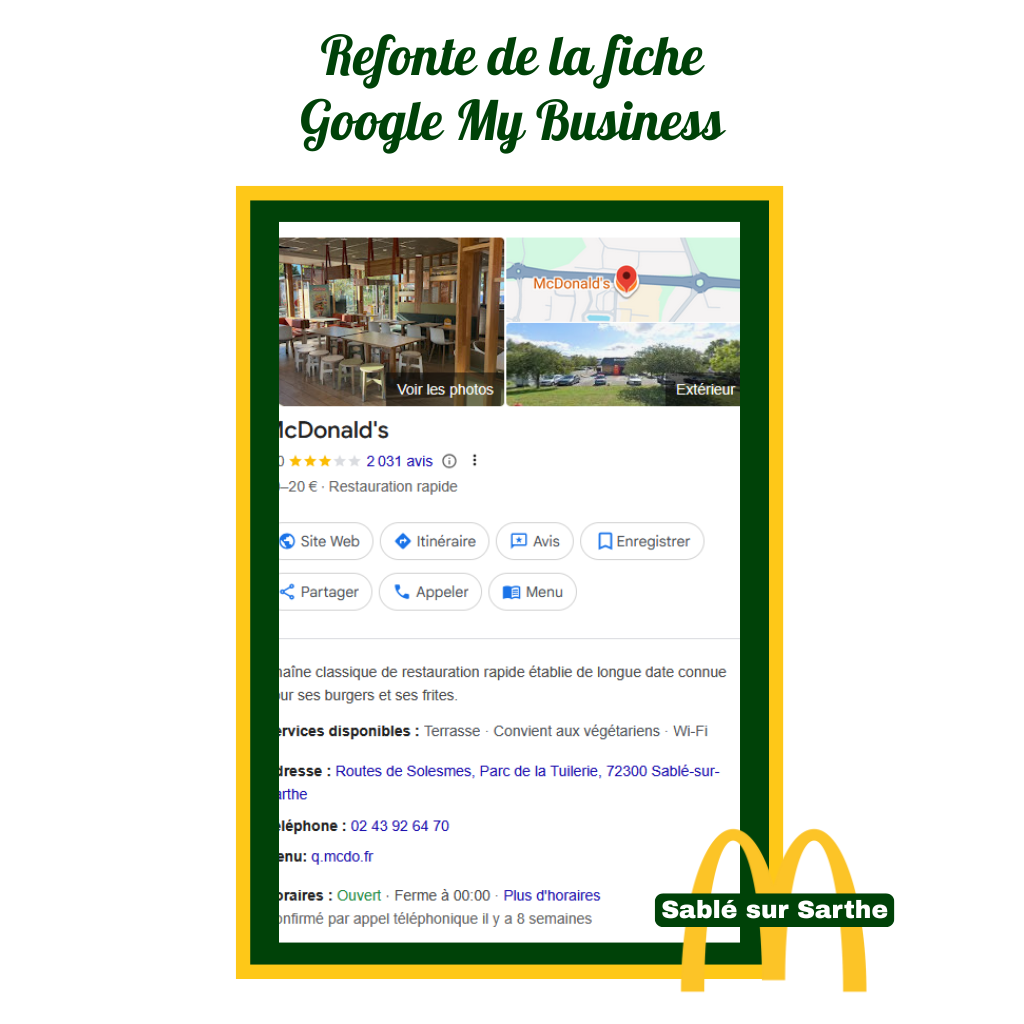 Que ce soit pour une création complète ou une refonte, nous conservons ce qui fonctionne déjà et améliorons ce qui peut l’être. Ainsi, votre entreprise gagne en visibilité locale, vos informations restent à jour et attractives, et vos clients vous trouvent plus facilement. Grâce à cette optimisation, vous développez votre présence digitale et vous renforcez votre image professionnelle auprès de votre audience.