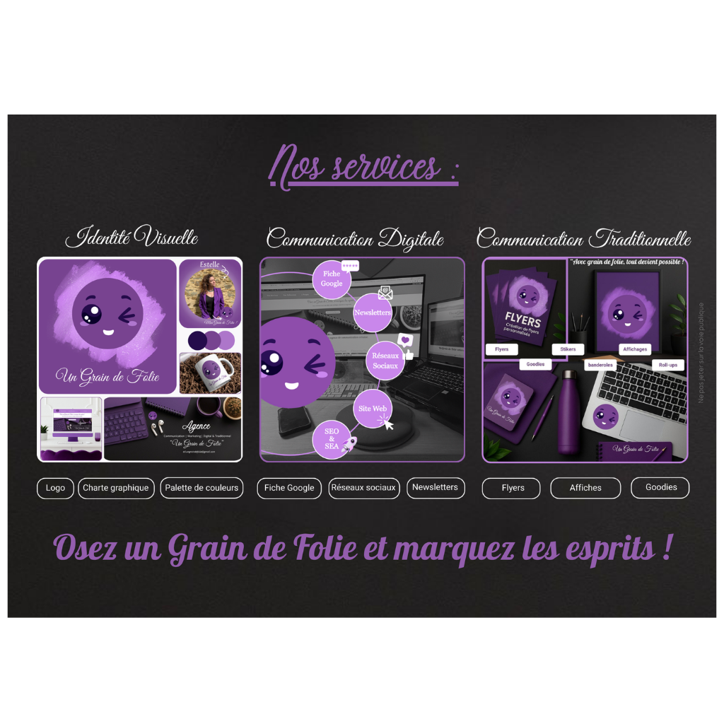 Ce partenariat local permet à Un Grain de Folie de valoriser le savoir-faire régional tout en garantissant des impressions durables et professionnelles, au service d’une communication visuelle cohérente et percutante.