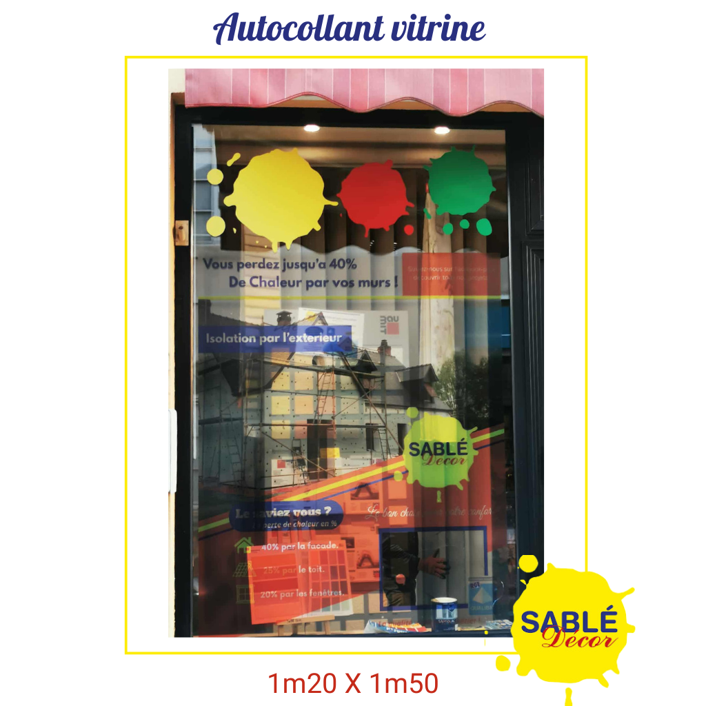 Un Grain de Folie a eu le plaisir de concevoir et de réaliser ce grand format pour Sablé Décor. Pensé en détail et produit avec le savoir-faire de notre partenaire imprimeur, ce projet allie créativité, technicité et durabilité pour offrir une vitrine qui attire le regard et résiste dans le temps.